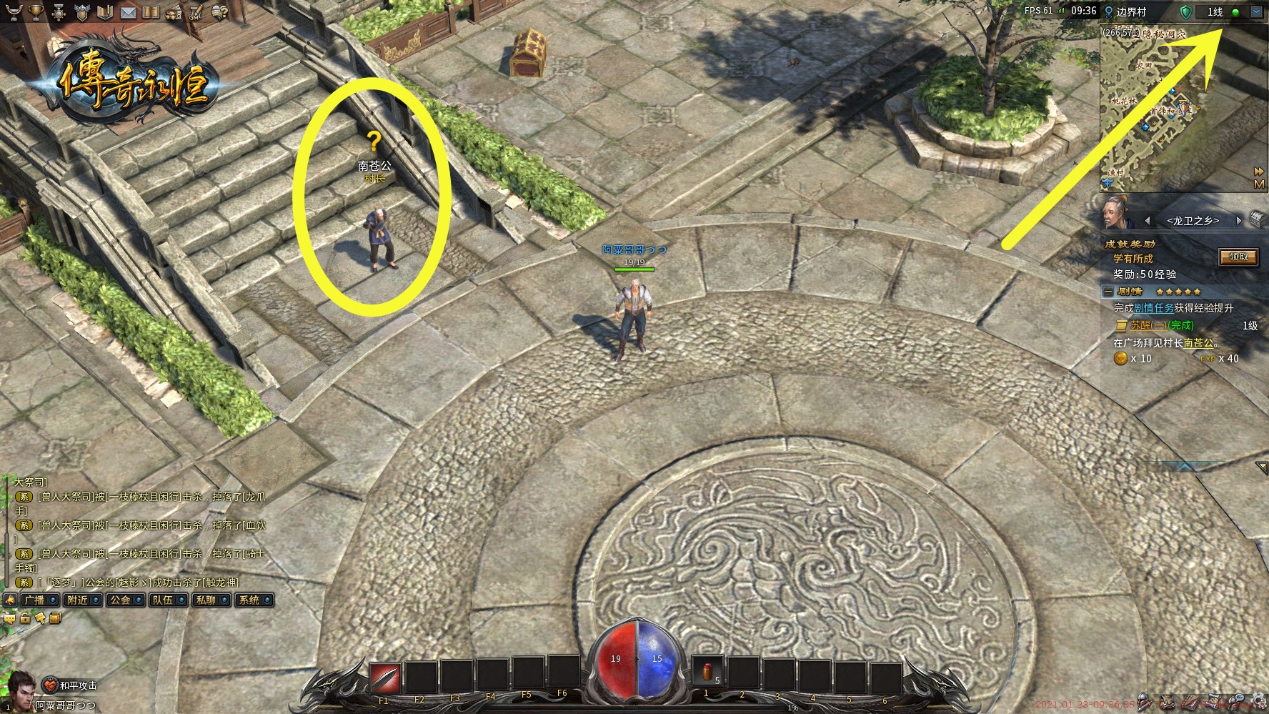 这时可以点击“南苍公”接取主线任务,头上有黄色问号的就是可以接取任务的NPC,右侧有详细介绍完成任务所需条件,鼠标左键点击所需要击杀的怪物,会出现一个光标引导,跟随光标便能准确地找到所击杀的怪物,按NumLock键可以人物可以自动走路,需要用鼠标控制方向,完成任务后可以获得“传送符”,利用传送符可以立即到达任务点。