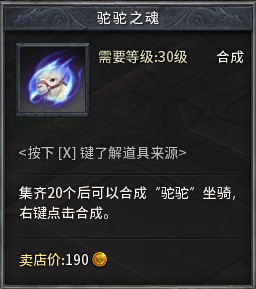 1、【驼驼之魂】不绑定,合成的【驼驼】坐骑也为不绑定;