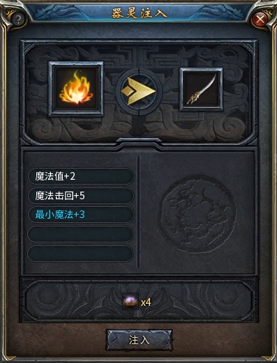 2、只可对同职业、同档位、同部位装备进行器灵注入。