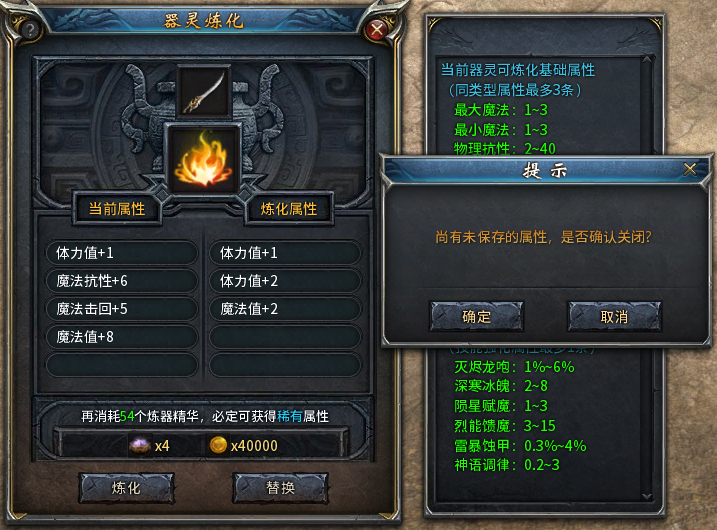 3、每次炼化获得的属性随机,可进行多次炼化以获取期望的属性数值。