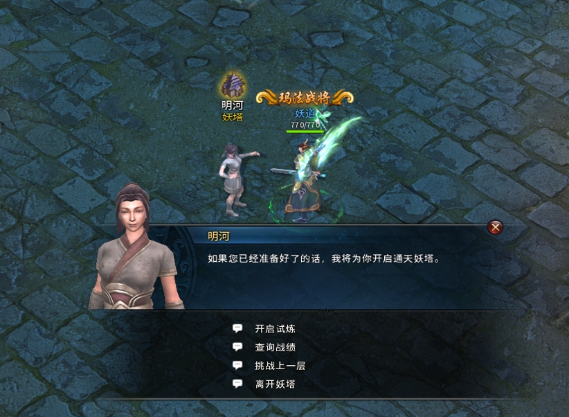 进入挑战地图后与Npc明河对话,开启挑战。
