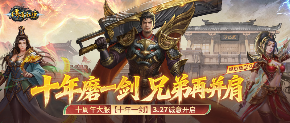 十年磨一剑,兄弟再并肩!《传奇永恒》迎来第十个年头,全新绿色2.0版本迎来十周年大服【十年一剑】,新服将于3月27日14时诚意开启,3月13日将同步开放预注册创角。焕新绿色生态,无学宫、散人打宝、降肝减氪是绿色2.0新版本独具一格的特色。