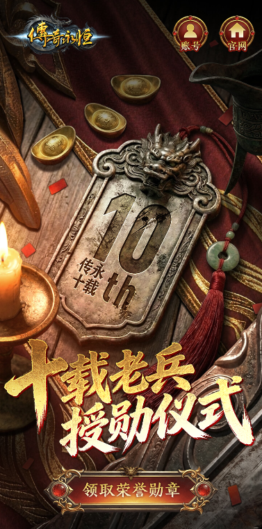 值此十周年庆之际,我们特推出全新绿色版2.0新服【十年一剑】,更重磅开启十周年专属 “十载老兵授勋仪式” 福利活动,邀你鉴定账号十年荣光,解锁十周年专属珍稀福利,以荣耀之名,再续玛法传奇!所有 2025 年 12 月 31 日前注册且登录的玩家,均可参与本次账号鉴定,领取十周年专属礼包,镌刻属于你的十年玛法记忆!