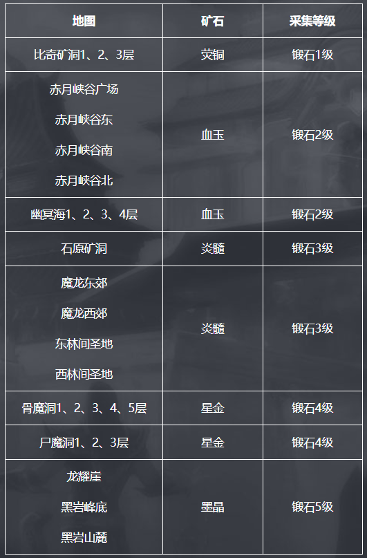 在高级地图(下图中不含比奇矿洞的地图)使用点金锄采集矿石时有概率获得。