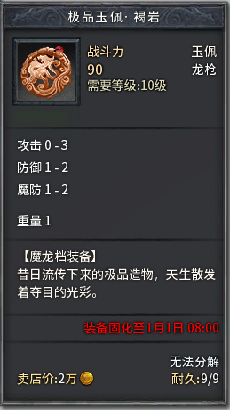 装备固化功能仅对祖玛档及以上装备生效。